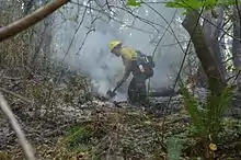 ![]() Firefighter at the River Complex Fire. | |