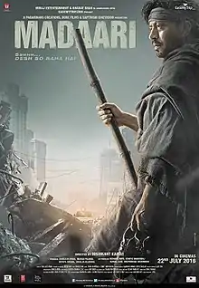 Madaari (transl. Puppeteer) is a 2016 Indian social thriller film directed by Nishikant Kamat. It is produced by Shailesh R Singh, Madan Paliwal, Sutapa Sikdar, and Shailja Kejriwal and co-produced by Nishant Pitti from Easemytrip. The film stars Irrfan Khan, Vishesh Bansal, Jimmy Shergill, Tushar Dalvi and Nitesh Pandey and was released on 22 July 2016. This was Nishikant Kamat's last film as director before his death on 17 August 2020. Upon release, it received positive reviews and was a sleeper hit at the box office, but in later years it became a cult classic.[3][4][5]