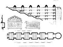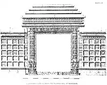 The well is 5.3 metres in diameter. At the top of the round well-shaft, there are six double-bent struts in the last storey; four in back wall covered with stone lintel for drawing up water, in leathern bags for irrigation purposes.[2][4]