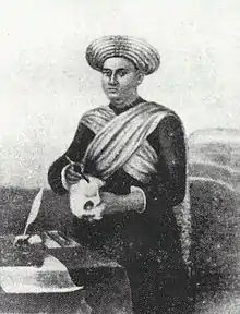 Madhusudan Gupta,[1][2] also spelled in several other ways including Panndit Madusudden Gupta,[3] Madhu Sudan Gupta,[4][5][6] and Moodhoosooden Goopto,[2] was born sometime in 1800 into a Vaidya family, a traditional physician caste, in Baidyabati, Hooghly. His grandfather was the Nawab of Hooghly's family physician and his great-grandfather was a Bakshi. Gupta rebelled against his father's wishes to pursue studies and left home during his early education. In December 1826, he gained admission to the Ayurvedic class of the Sanskrit College. What happened in the years between leaving home and entry to college is unclear.[2]