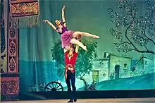 Madina Aliyeva (Azerbaijani: Mədinə Vaqif qızı Əliyeva) is a ballerina, ballet choreographer, ballet-master, People's Artist of Azerbaijan (2002),[1] personal grant-holder of the President of the Republic of Azerbaijan (2008). "Golden Dervish" and "Zirva" award laureate.[1]
