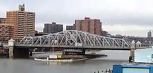 The Madison Avenue Bridge is a four-lane swing bridge crossing the Harlem River in New York City, connecting Madison Avenue in Manhattan with East 138th Street in the Bronx. It was designed by Alfred P. Boller and built in 1910, doubling the capacity of an earlier swing bridge built in 1884. The bridge is operated and maintained by the New York City Department of Transportation.