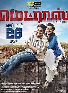Madras is a 2014 Indian Tamil-language political action drama film written and directed by Pa. Ranjith. The film stars Karthi, Catherine Tresa, marking the debut in Tamil cinema and Kalaiyarasan while Charles Vinoth, Riythvika, V. I. S. Jayapalan, Poster Nandakumar, and Mime Gopi play supporting roles. Set in the backdrop of North Madras, the storyline revolves around Kaali (Karthi) and his friend Anbu (Kalaiyarasan), a political aspirant, who get embroiled in a brutal political rivalry, between two factions of a political party, after laying claim to a wall.