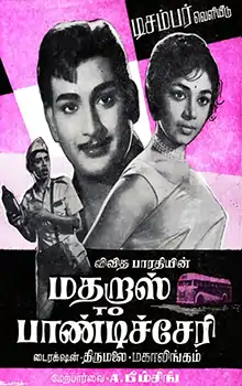 Madras to Pondicherry was directed by the duo Thirumalai–Mahalingam, written by Usilai Somanathan,[2] and produced under the banner Sri Venkateswara Cinetone by four people: T. S. Adhinarayanan, P. M. Nachimuthu, S. Sivaraman and G. K. Selvaraj.[1] It was among the earliest road films in Tamil cinema.[3]