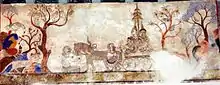 Wall paintings inside are essentially the masterpiece, reflecting capability of local artists at that time. It depicted the tale of Vessantara, the king who gave up everything he owned to pave the way for achieving enlightenment. It was done at the same time of the construction of the building. Even though the paint was chipped and faded away over the period of over 150 years, it still retains great beauty, imagination, and wisdom of self-taught local artists.