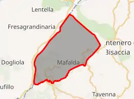 Mafalda borders the following municipalities: Dogliola, Fresagrandinaria, Lentella, Montenero di Bisaccia, San Felice del Molise, Tavenna, Tufillo.