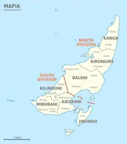 Mafia Island (Kisiwa cha Mafia) is an island and district of Pwani Region, Tanzania. The island is the third largest in Tanzanian ocean territory,[1] but is not administratively included within the semi-autonomous region of Zanzibar, which has been politically separate since 1890. Mafia Island forms the major part of Mafia District, one of the six administrative districts in the Pwani coastal region. The local archipelago and the main island are sometimes called Chole shamba in Swahili, hinterlands of the former maintown of Chole on Mafia Bay.[2]