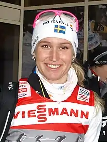 Emma Magdalena Sven-Eriksdotter Pajala (born 11 March 1988) is a Swedish female cross-country skier. She has competed in the World Cup since 2008.[1] In January 2010, Pajala participated in the 2009-10 Tour de Ski and won the sprint event in the Swedish National Championship.[2] In Tour de Ski, she finished ninth in the freestyle sprint and 10 km classical events,[1] and ended up at 35th place in the overall rankings.[3] At the 2010 Winter Olympics, Pajala finished fifth in the 4 × 5 km relay and tenth in the individual sprint event.[1] Her best World Cup finish is fourth place at a sprint event in Drammen, Norway in March 2010.[1]