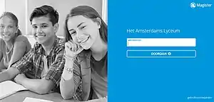 Magister is a Dutch online administrative application, used in the schooling system in secondary education. All of the students' information is on this platform. Students, parents and teachers are able to access this at all times. It is used to keep up with the management, administration and health issues of students, and users can also view their grades, timetable, homework assignments and absences. In 2012 the software had a 70% market share in the Netherlands.[2]
