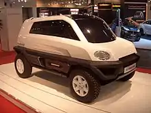 The Alpin was a small, lightweight off-road vehicle for four passengers in a 3+1 seat arrangement announced at the 2008 Geneva Motor Show.[21] It had an unusual mid-engine layout and was based on a low-cost production concept.[22] It was 3540 mm long, 1703 mm wide and 1750 mm high, with a 3-cylinder 1.0 L (999cc) engine in two versions; CNG natural gas or petrol. The petrol version was much lighter, with a weight of 906 kg.