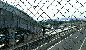 Megara railway station (Greek: Σιδηροδρομικός σταθμός Μαγούλας, romanized: Sidirodromikós Stathmós Megáron) is a station in the city of Magoula, West Attica, Greece. It is located adjacent to A8 motorway between Athens and Patras. It was opened on 18 July 2006 as part of the extension of the Athens Airport–Patras railway to Corinth[3] It has two side platforms and a siding.[4] The station is served by Line 2 of Proastiakos Athens between Piraeus and Aigio[5] and Line 5 between Aigio and central Athens/Athens Airport.[5] The station has a similar design to Ano Liosia railway station. The station serves the adjacent Thriasio hospital.