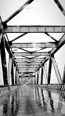 Mahatma Gandhi Setu (also called Gandhi Setu or Ganga Setu) is a bridge over the river Ganges in Bihar, India, connecting Patna in the south to Hajipur in the north.[3] Its length is 5,750 metres (18,860 ft)[4] and it is the third-longest river bridge in India.[5][6] It was inaugurated in May 1982 in a ceremony in Hajipur by the then prime minister, Indira Gandhi. From 1982 to 2017, Mahatma Gandhi Setu remained as the longest bridge in India. Later, Gandhi Setu rehabilitation project was undertaken to install triangular steel trusses on Mahatma Gandhi Setu.[7]