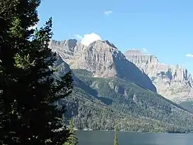 Mahtotopa Mountain (8,677 feet (2,645 m)) is located in the Lewis Range, Glacier National Park in the U.S. state of Montana.[3] Mahtotopa Mountain rises to the south above Saint Mary Lake midway between Red Eagle Mountain and Little Chief Mountain and can be easily seen from the Going-to-the-Sun Road to the southwest of Rising Sun. Originally named Four Bears Mountain by George Bird Grinnell in 1885, the name was changed in 1932 to Mahtotopa. Mahtotopa is an incorrect spelling of "Mato-tope", the Mandan chief known as Four Bears. Mato-tope was a grandfather of Joe Kipp, a hunting companion of Grinnell.
