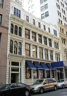 One of the handful of mid-19th century commercial structures still standing in the Financial District, is 90–94 Maiden Lane, built for Roosevelt & Son, with a cast-iron front (attributed to Charles Wright, 1870–71) by Daniel D. Badger.[16][note 2]