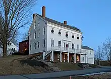 Captain Eben York's mansion at 326 Main Street (occupied since 1910 by the Parish Office of the Sacred Heart Catholic Church next door).[3] Father Joseph Quinn held services in the barn until it burned in 1913.[41]