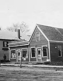 Coombs Bros. (Albert and George) candy and grocery store (located at 298 Main Street in the building between Railroad Crossing and South Street in a different construction than what is standing today). Bert set up the town's telephone service in 1895.[25] Elmer Ring's "washerette" later stood in the Coombs location, and it was he who changed the roofline and façade of the building. He also ran a hardware store, a heating and plumbing service, and a coal yard. In 2020, the town gave permission for developers to tear down the historic building.[40]