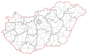 The Main road 15 (formerly main road 150) is a south–north direction First class main road in the Kisalföld, that connects the Main road 1 change to the border of Slovakia. The road is 17.5 kilometres (10.9 mi) long.[1] Most of the traffic was taken over by the M15 motorway.