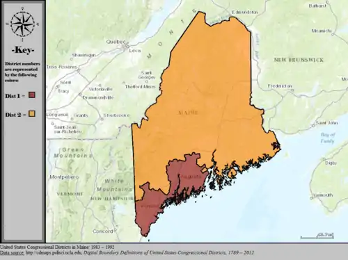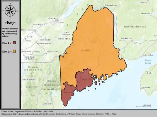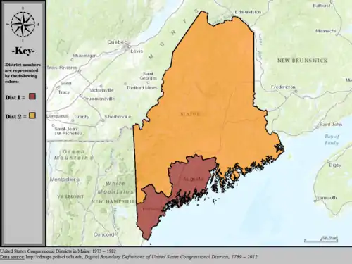 Table of United States congressional district boundary maps in the State of Maine, presented chronologically.[5] All redistricting events that took place in Maine between 1973 and 2013 are shown.