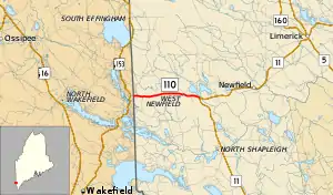 State Route 110 (SR 110) is a short state highway in southwestern Maine, located entirely within the town of Newfield. Route 110 begins in the west at the New Hampshire state line less than a half-mile from New Hampshire Route 153, which connects via unnumbered Stevens Corner Road. The eastern terminus is located 3.6 miles east at an intersection with State Route 11 near Rock Haven Lake.