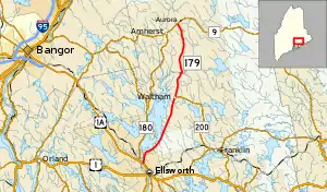 State Route 179 (SR 179) is a state highway in the U.S. state of Maine. It runs entirely in Hancock County for a distance of 22 miles (35 km) between Ellsworth and Aurora.