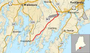 State Route 97 (SR 97) is part of Maine's system of numbered state highways, located near the southern coastline. It runs 9+1⁄2 miles (15.3 km) from an intersection with SR 220 in Friendship to an intersection with U.S. Route 1 (US 1) in Warren.