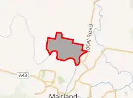 Maitland Vale is a predominately rural suburb and covers an area of 11.3 square kilometres (4.4 sq mi) with a new residential development in the southeastern corner comprising 20.5 hectares (51 acres).[3] The Hunter River is located along the southern boundary, with the North Coast Railway along the eastern boundary.