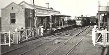 The station is susceptible to floods. In the 1955 floods the signalbox was washed away with its replacement constructed on stilts. This closed on 27 October 1990 and has been leased to a model railway club.[5][6][7] The high water marks have been marked on the building on Platform 1. Flood gates have been installed at the northern end of the platforms. A new signal box opened opposite the station on 17 December 1990.[8]