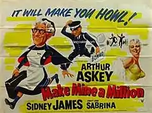 Make Mine a Million is a 1959 British comedy film directed by Lance Comfort, starring Arthur Askey, Sid James, and Bernard Cribbins.[1] The film parodies the stuffiness of the 1950s BBC and the effect of television advertising in the era.