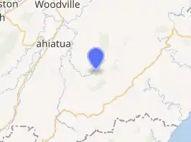 The area features dusty gravel roads, a bush-clad gorge valley, and sheep farms on the rolling green surrounding hills. It is about an hour's drive from Palmerston North, between Pahiatua and Pongaroa.[2]