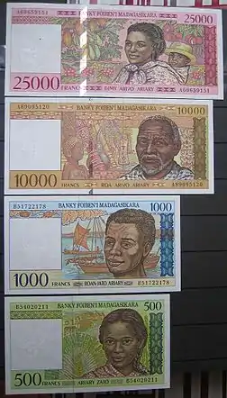 ![]() The last of Malagasy franc banknotes | |