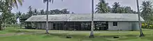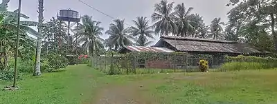 Lutheran Mission 2 miles NE of Lae. Staff now in Australia. Was equipped with a radio telephone, but equipment removed by administration. Large airdrome with repair workshops 1 mile to NE. Sawmill (with tractor) 2 miles to north. Plantation to north or airdrome. Plantation. 3 miles NE. 300 acres coconuts, also sawmill to north of plantation. House, trade, store, copra store. Owned by Lutheran mission Photograph 14 (Photo 13 depicts teachers house (see workshop photo), church, native school, mission house)Malahang Airfield is three miles NE of Lae. 600 x 90 yds wide. Runs NW/SE (131 degrees).Extensions possible at present suitable for limited types of aircraft only. There were two hangars on NE edge of clearing. A clearing 80 x 200 yds has been made at the NW end.[6]