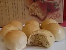 Traditional wheat-based pleated steamed bao or pao (Chinese : 包子) is a Chinese staple which has become tightly woven into Malaysia's gastronomic fabric. Pao are found in restaurants doing brunch dim sum trade, as well as specialist Chinese kopitiam (coffee shops). Sweet fillings may include tausa, lotus seed paste, kaya, pandan, ground peanuts, and custard; savoury fillings may consist of stewed char siu (Chinese : 叉燒), chicken or pork. Malay versions (pau) may be found in night markets (pasar malam) and they are always halal, with fillings of curried potato, chicken or beef. Some variants have a quail egg in the middle in addition to the curry.