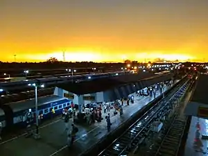 Malda Town railway station is amongst the top hundred booking stations of Indian Railways.[4] One of the reasons for it being a busy station is that every train that passes through the station stops here since it is the meeting point of two railway zones (i.e. The Eastern Railway and the Northeast Frontier Railway). To the north of the station starts the Northeast Frontier Railway and to the south starts the Eastern Railway.