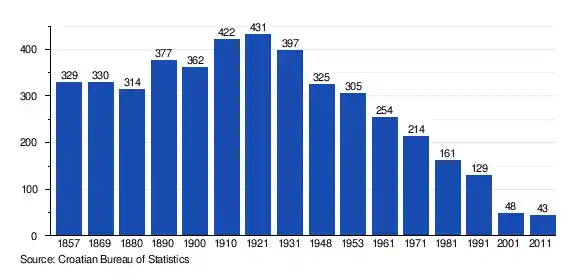 According to the 1991 census,[2] 97.67% of the village population were ethnic Serbs (126/129), 0.78% were ethnic Croats (1/129) and 1.55% were Yugoslavs (2/129).