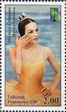 ![]() Sobirova on a 2020 stamp of Tajikistan | |