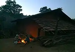 ![]() A Bonda family basking near a fire in Mudulipada | |