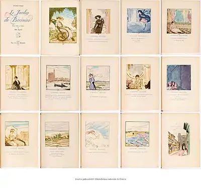- Maurice Barrès, Le Jardin de Bérénice,[5] 30 dry-points in color, 28 × 20 cm, Les Cent bibliophiles, 1922, 170 p.