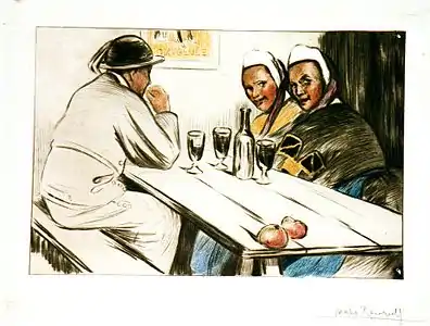 Les Deux Pommes ou l’auberge, pointe sèche en couleur (1920), Musée de Pont-Aven.