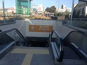 Maltepe is an underground station on the M4 line of the Istanbul Metro in Maltepe.[2] It is located beneath the Maltepe Interchange, on the D.100 State Highway, in the Zümrütevler neighborhood. Connection to IETT city buses and Istanbul Minibus service is available. The station consists of an island platform with two tracks and was opened on 17 August 2012.[3]