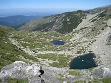 The Malyovishki Lakes (Bulgarian: Мальовишки езера [mɐˈʎɔviʃki ɛzɛˈra]) are a group of three glacial lakes, situated in the northwestern Rila Mountains in Bulgaria. They are located to the north of the summit of Malyovitsa (2,729 m) in the southwestern part of the homonymous cirque in the upper reaches of the Malyovitsa River, a right tributary of the Cherni Iskar, which is considered the main stem of Bulgaria's longest river that runs entirely within the country, the Iskar.[1] They are terraced from the southwest to the northeast along 300 m.[1]