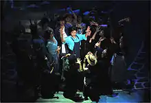On May 15, 2005, Mamma Mia! surpassed the original Broadway runs of The Sound of Music, The King and I, and Damn Yankees with 1,500 performances.[24] On March 6, 2014, it surpassed Rent to become the 8th longest-running Broadway musical and 9th longest-running show of all time with 5,124 performances,[51][52] then surpassed Beauty and the Beast's 5,462 performances that same year, on December 14, to become Broadway's 7th longest-running musical and 8th longest-running show.[53] The Broadway run ended on September 12, 2015, with its 5,758th performance, and was passed two years later (August 16, 2017) by Wicked to move one spot down in the list of longest-running Broadway shows.[54]