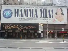 The musical opened on Broadway at the Winter Garden Theatre on October 18, 2001, after beginning previews on October 5. The director is Phyllida Lloyd with choreography by Anthony Van Laast. As of October 2017, it is the ninth longest-running Broadway show and the longest-running jukebox musical in Broadway history. On April 18, 2013, it was announced that Mamma Mia! would transfer from its home at the Winter Garden Theatre to the Broadhurst Theatre later that year to make way for the musical adaptation of Rocky.[16] The show played its final performance at the Winter Garden Theatre on October 19, 2013 and began performances at the Broadhurst Theatre on November 2, 2013.[17]