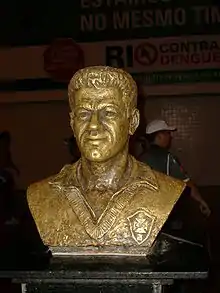 At club level, Garrincha played the majority of his professional career for the Brazilian team Botafogo. In the Maracanã Stadium, the home team room is known as "Garrincha".[10] In the capital Brasília, the Estádio Nacional Mané Garrincha is named after him. He is credited for inspiring the first bullfighting chants of olé to be used at football grounds.[11]