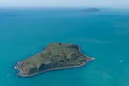 Mana Island is a 3 km (1.9 mi) long, 2.17 km2 (0.84 sq mi) table, with cliffs along much of its coast and a plateau occupying much of the interior. It lies 3 km (1.9 mi) off the North Island coast in the Tasman Sea, west of the city of Porirua and south of the entrance to Porirua Harbour. In 2009, it was selected by the Global Restoration Network as one of New Zealand's top 25 sites for ecological restoration. Although a wildlife sanctuary, and thus with no permanent human population, the island is officially defined as a suburb of Porirua City.