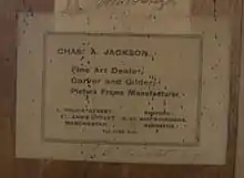 Frederick William Jackson (1859–1918) was born at Middleton Junction, Oldham in 1859.[12] He was the son of an art dealer and photographer. He had two brothers, Vincent Jackson, a musician trained at Leipzig Conservatoire and Charles Arthur Jackson, who was also an art dealer in Police Street, Manchester. He attended evening classes at the Oldham Lyceum where John Houghton Hague was one of the teachers. When the school was demolished he transferred to the Manchester School of Art.[13] He travelled at length, always painting in the open air. He worked in Russia, where it was several degrees below zero, North Africa and various parts of Europe. A former student of his, Laura Knight, described Jackson painting outside in the following way: "He would paint out of doors in any weather. Under the mittens he wore his hands were swollen, stiff and chapped, as were the edges of his ears and the wings of his nostrils."[14]