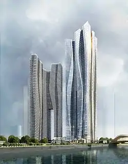 The tower is a mixed-use development located on a riverfront site in the Jin-jiang district. The tower was designed by Aedas.[1]