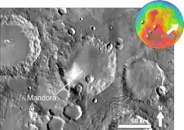 | Wikimedia Commons has media related to Mandora (Martian crater). |