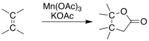 Manganese triacetate has been used as a one-electron oxidant. It can oxidize alkenes via addition of acetic acid to form lactones.[3]