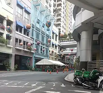 The architecture of the buildings features a Manhattan-inspired designs with curved rooftops, lush green spaces and garden-inspired landscaping in all its buildings, featuring clustered Garden Villas (located at the Manhattan Parkview) and sky gardens within the complex. The development includes additional parking spaces for both guests, shoppers and residents throughout the complex. The Manhattan Gardens also houses dining, retail, and leisure establishments, such as the famed Manhattan Row, located along Gen. Malvar Avenue, between the Manhattan Parkway and the Manhattan Parkview towers. The Manhattan Row also offers al fresco dining and entertainment events.[7][8][9][10]