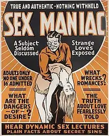 Maniac, also known as Sex Maniac, is a 1934 black-and-white exploitation/horror film, directed by Dwain Esper and written by Hildagarde Stadie, Esper's wife, as a loose adaptation of the 1843 Edgar Allan Poe story "The Black Cat", with references to his "Murders in the Rue Morgue".[2] Esper and Stadie also made the 1936 exploitation film Marihuana.